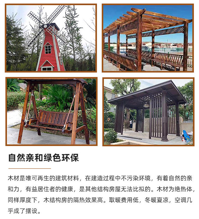 • 熱門關鍵詞:木屋,涼亭、景觀水車、花架、風車、秋千、售賣屋